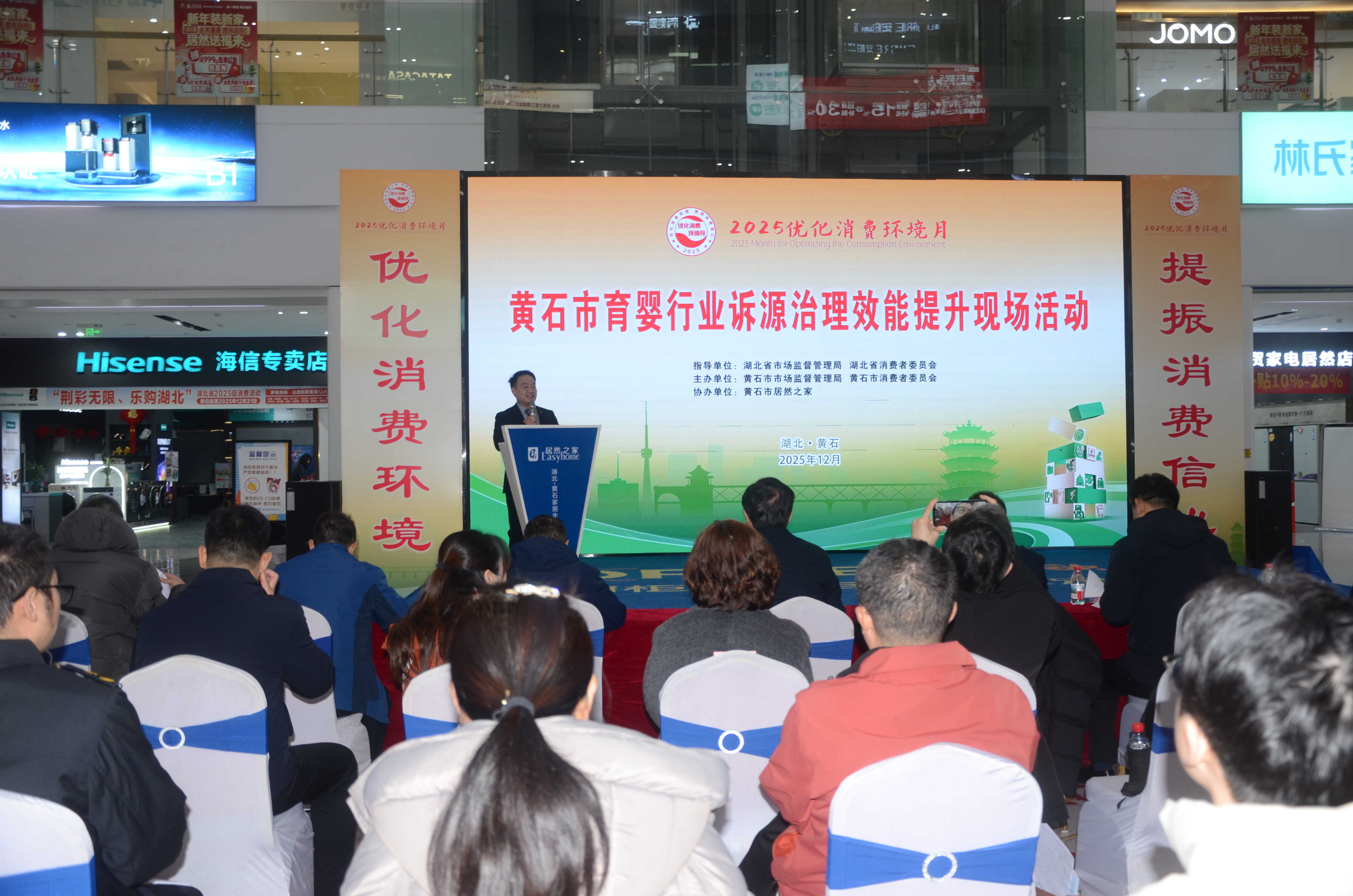 为深入推进消费纠纷源头治理,持续优化育婴行业消费环境,12月23日,由湖北省市场监管局、省消委指导,黄石市市场监管局、市消委联合开展的育婴行业诉源治理效能提升活动在居然之家团城山店举行。各县市区市场监管局、相关企业及行业协会参加。