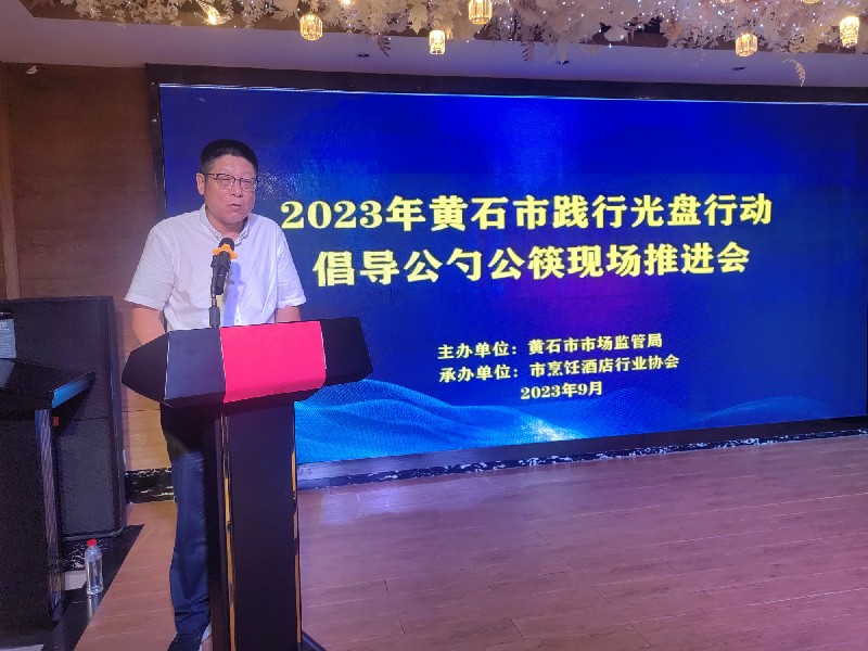 当前正值创建全国文明城市、国家卫生城市复审、创建国家食品安全示范城市的决战决胜期,为积极倡导勤俭节约的用餐习惯、科学合理的饮食方法,引导广大餐饮单位做文明健康生活方式的参与者、践行者、传播者,9月20日,黄石市市场监管局在楚江南美食健康广场开展“2023年践行光盘行动、倡导公勺公筷现场推进会”,全市60余名大中型餐饮服务单位代表参加。市市场监管局党组成员、副局长章炜同志参加活动并讲话。