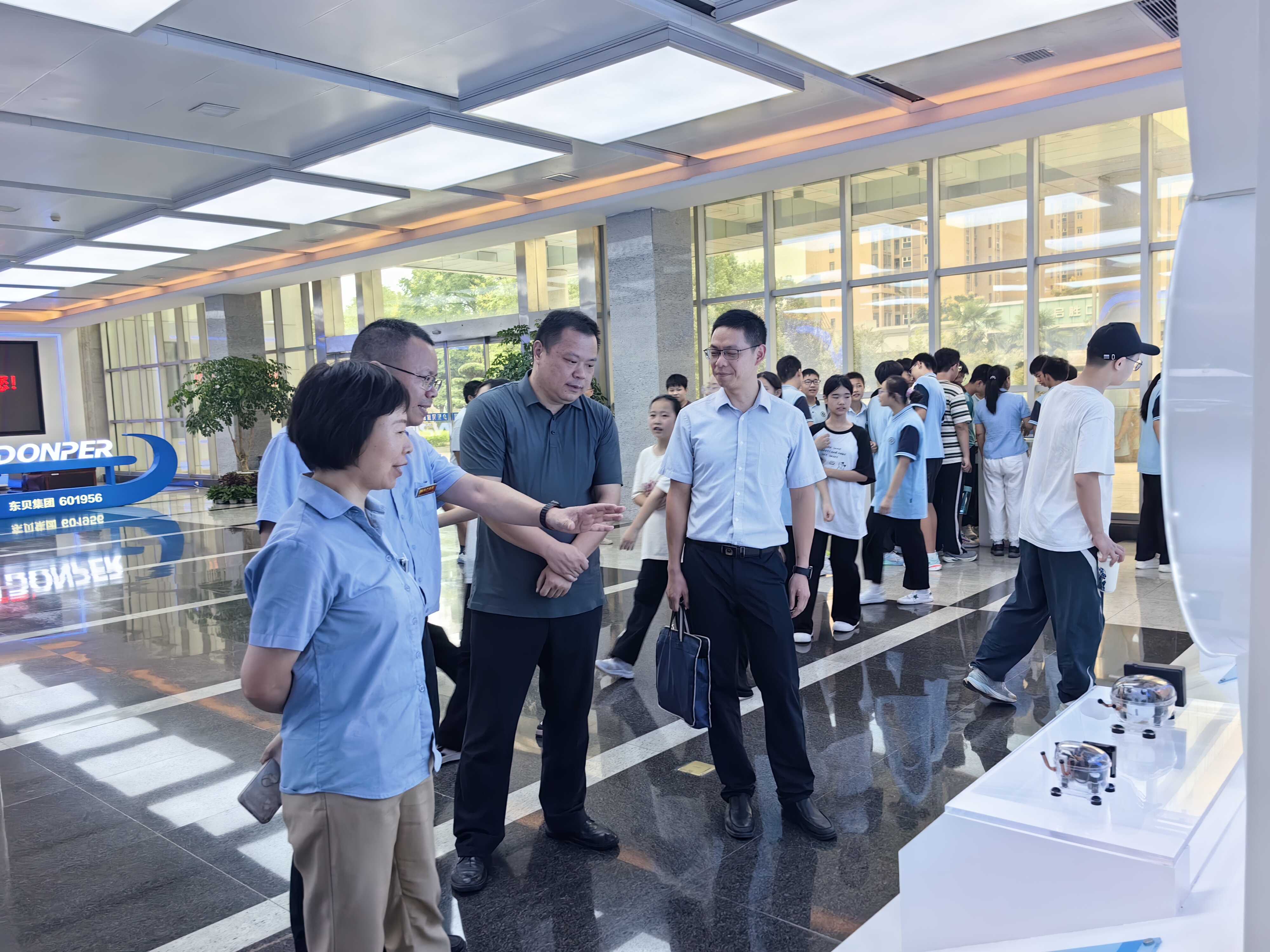 在井然有序的生产线上,同学们看到一件件压缩机零部件在数控机床和智能机械臂之间来回穿梭,通过数十道环节逐步加工形成压缩机成品。在产品陈列室,讲解员告诉大家,东贝的产品通过重重质量检测后,部分数据指标可达到每百万份不合格率低于6份(PPM6),正是严苛的质量管理推动东贝压缩机成为行业领军企业。在质量“小课堂”上,同学们观看公司质量文化宣传片,东贝压缩机副总经理刘启贵致辞并与同学们进行质量小知识互动。
