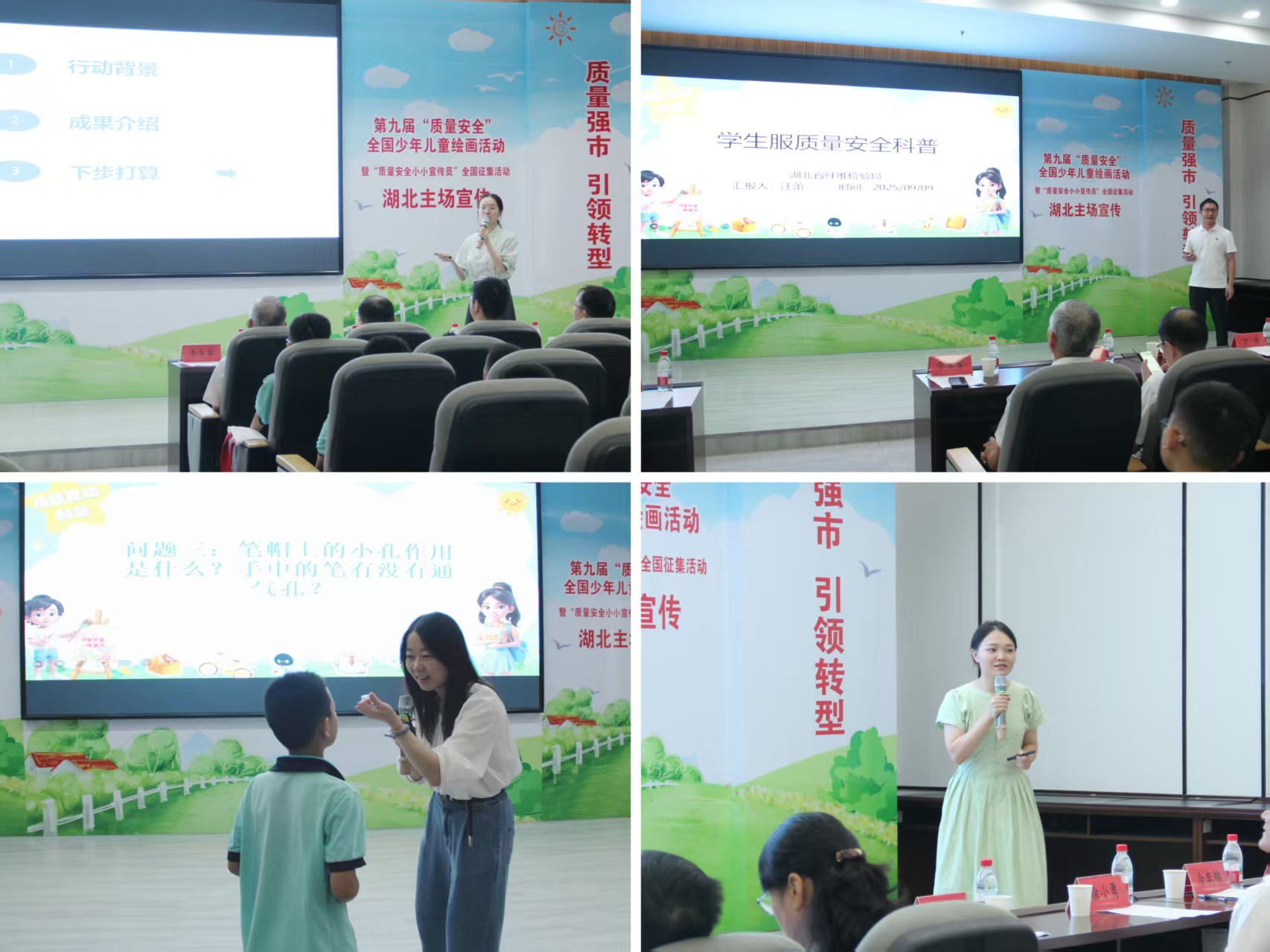 活动中,市场监管总局质量监督司消费品处、省市场监管局质量监督处分别介绍儿童和学生用品安全守护三年行动计划相关部署以及湖北儿童和学生用品安全守护行动取得的成果。中国质量报刊社工作人员介绍第九届“质量安全”全国少年儿童绘画活动暨“质量安全小小宣传员”全国征集活动相关情况,并与湖北省质检院、省纤检局专家围绕“学生用品质量安全”进行互动式科普讲解。来自开发区钟山小学的50余名学生们积极踊跃举手回答专家提问, 现场气氛热烈。与会领导还为学生代表赠送了绘画画笔。