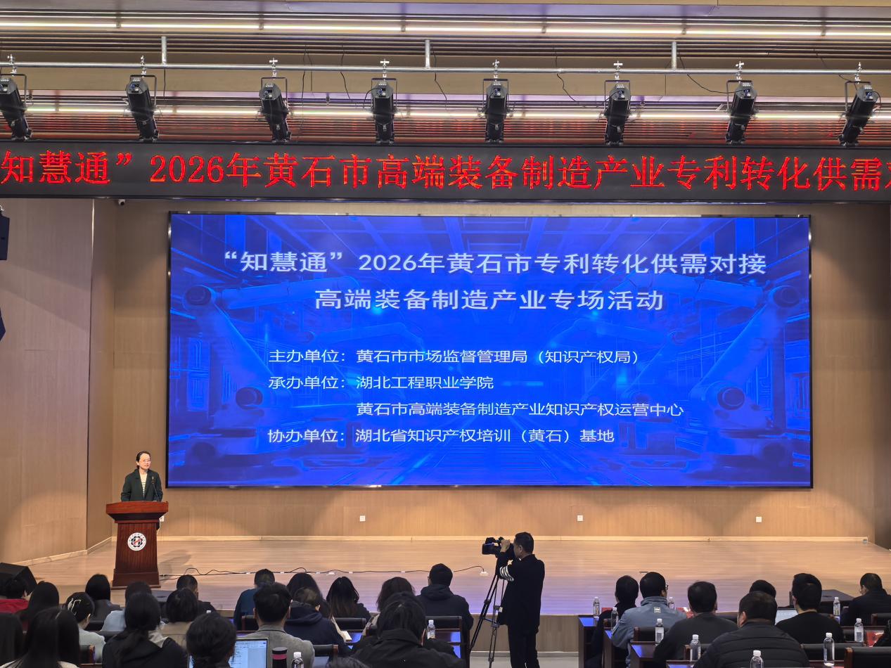 为推动专利转化运用,助力高端装备制造产业高质量发展,3月26日,“知慧通”2026年黄石市高端装备制造产业专利转化供需对接专场活动在湖北工程职业学院成功举行。市市场监管局党组成员、副局长王萍出席活动并讲话。