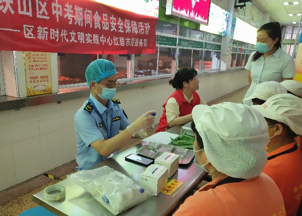 “看到朝气蓬勃的考生,想到了20年前走进考场的自己。能为中考逐梦贡献力量,我非常开心!”6月21日,是一年一度的中考第二天,也是开发区·铁山区市场监管局志愿者小刘在中考考点食堂开展食品安全快检的第二天。