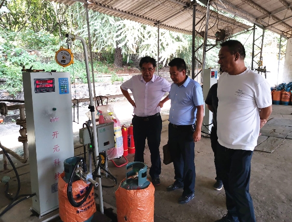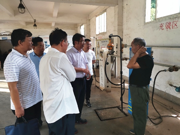 范国平一行先后来到黄石市煤气公司、大冶市城西浩正液化气站、大冶市蓝天石油液化气有限公司3家充装站,查看采用智能角阀、二维码作为数据载体的液化石油气气瓶信息化管理模式,对气瓶信息化工作推进过程中遇到的问题进行深入交流。