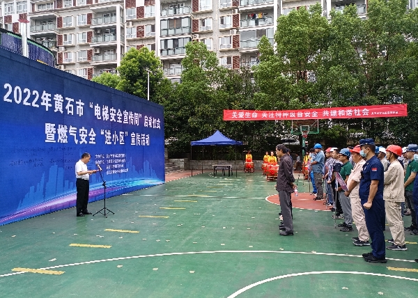 8月30日上午,市市场监管局在宏维·山水明城小区开展2022年黄石市“电梯安全宣传周”启动仪式暨燃气安全“进小区”宣传活动。市城管委燃气管理办公室、市消防救援支队,下陆区市场监管局以及社区、物业协会、电梯协会等相关单位负责人出席活动。