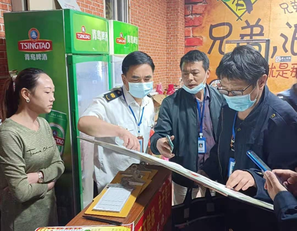 综合执法支队组织成立近40人的专项执法突击队,分四个执法组开展执法检查工作。当晚,共检查小副食、小餐饮、夜市摊等单位48家,现场督促整改问题23个,限期整改问题4个。