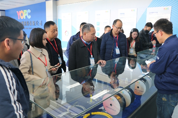 活动中,考察团集中观看了长飞光纤公司宣传视频,并先后参观制造车间和技术研发中心,实地了解预制棒、拉丝等工艺及质量验证流程。在大厅展台,企业代表们聆听长飞光纤在技术创新、开拓市场等领域的工作成绩,并就相关问题进行交流。