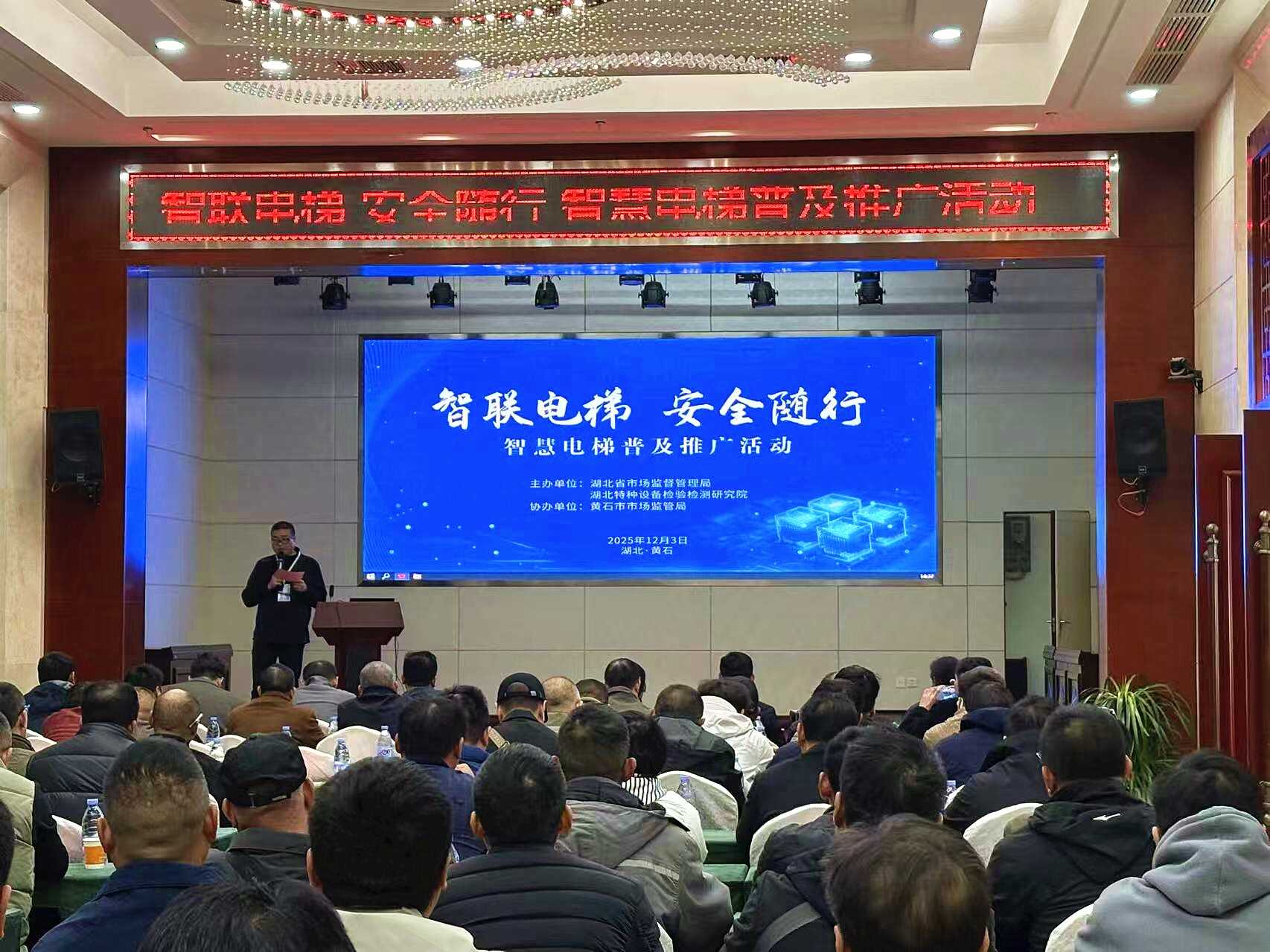 为贯彻落实国家及省市关于特种设备安全工作的部署要求,破解电梯安全监管难题,推动行业安全管理能力提升,12月3日,湖北省市场监管局联合湖北特检院在黄石市开展“智联电梯·安全随行——智慧电梯普及推广活动”。湖北特检院黄石分院、黄石市市场监管局有关人员及全市电梯使用、维保单位负责人及技术骨干共计100余人参加活动。
