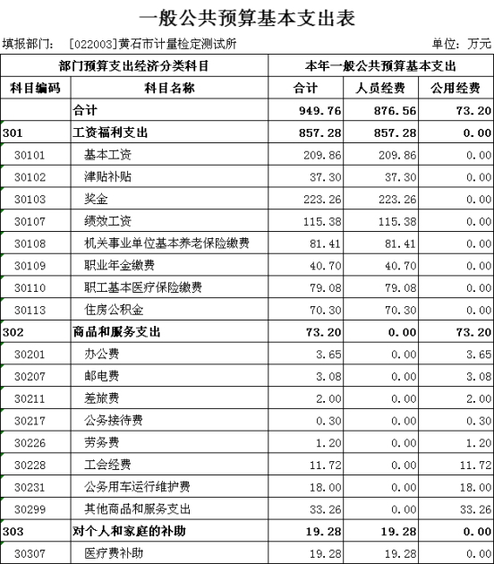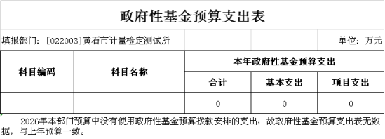 2026年度黄石市计量检定测试所预算公开情况说明