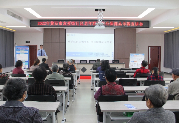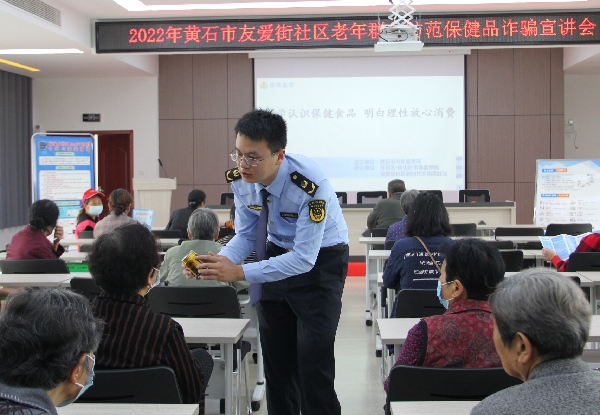 为认真贯彻落实省市场监管局关于打击整治养老诈骗的工作部署,维护老年人合法权益,提升老年人对保健食品的正确认识,防止上当受骗,5月20日,黄石市市场监管局联合开发区·铁山区市场监管局和友爱街社区新时代文明实践站,在友爱街社区举办老年群体防范保健品诈骗科普宣讲活动。周边社区群众近40人参加活动。