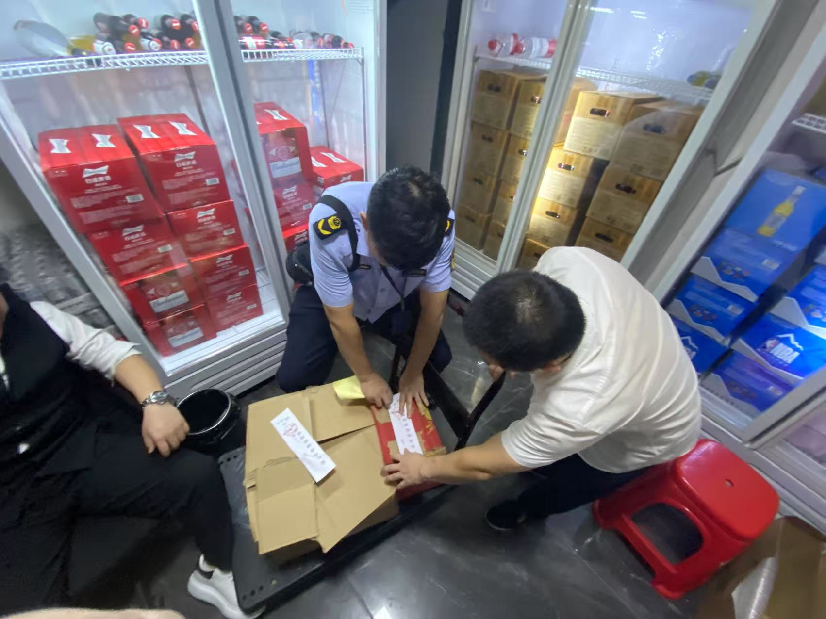8月12日晚,根据市民举报部分娱乐场所存在销售假冒伪劣酒类产品的线索,市市场监管局迅速组织对辖区内大型KTV、酒吧等酒类经营场所开展专项整治行动。