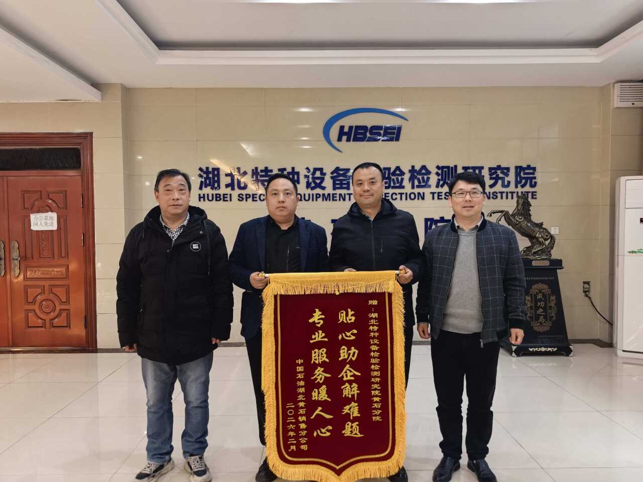 2月26日下午,湖北特检院黄石分院暖意融融,中国石油湖北黄石销售分公司相关负责人专程送来一面印着“贴心助企解难题,专业服务暖人心” 的锦旗,真诚感谢黄石分院长期以来提供的全方位特种设备检验检测服务支持。