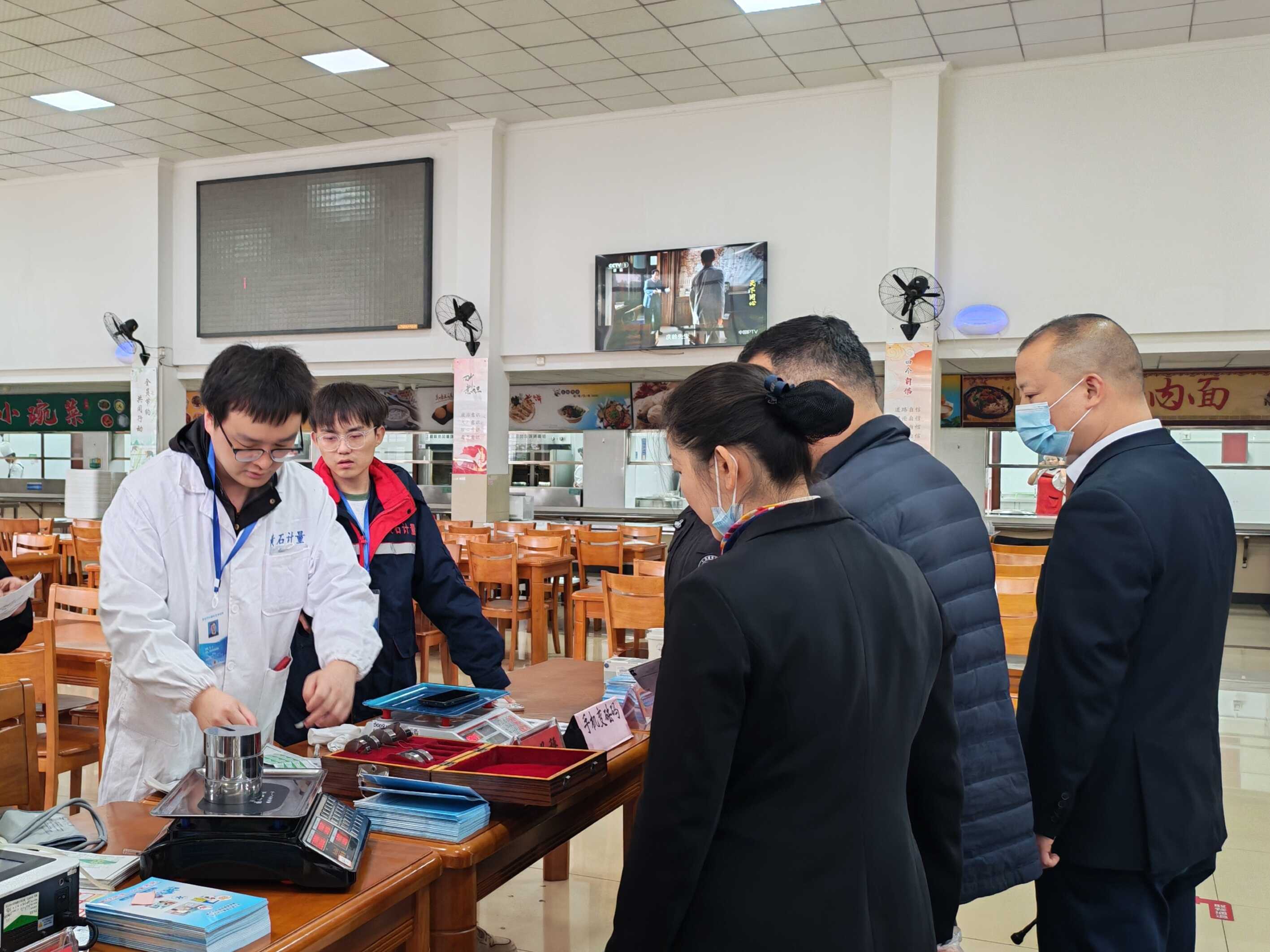 在免费检测服务环节,技术人员为干部职工提供血压计、体重秤、眼镜度数等免费检测校准服务,并对机关食堂电子秤、办公用秤、燃气报警仪、医务室血压计等公用计量器具开展现场检定,确保各类器具量值准确、使用安全,进一步规范机关内部计量器具管理使用。