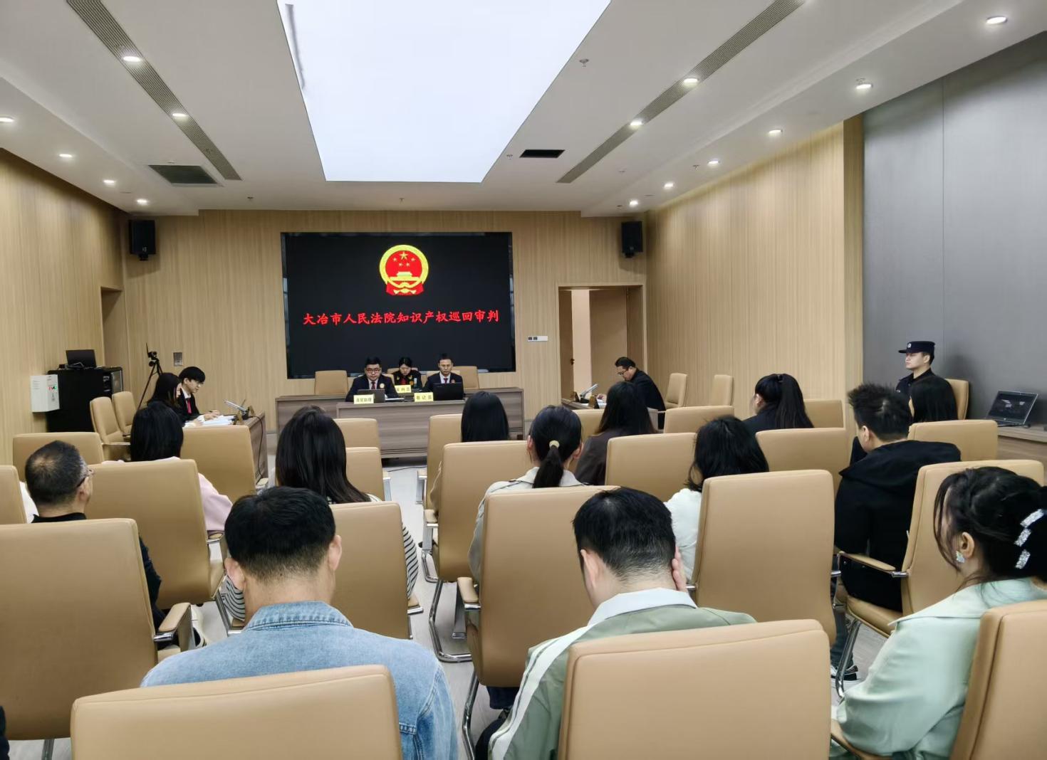 为深入开展知识产权宣传周系列活动,推动知识产权司法保护下沉基层末梢,切实规范乡镇市场主体经营行为,4月22日,大冶市人民法院将庭审现场搬进黄石临空经济区科创中心,公开巡回审理侵害作品信息网络传播权典型侵权案件。辖区20余家企业从业者现场观摩。