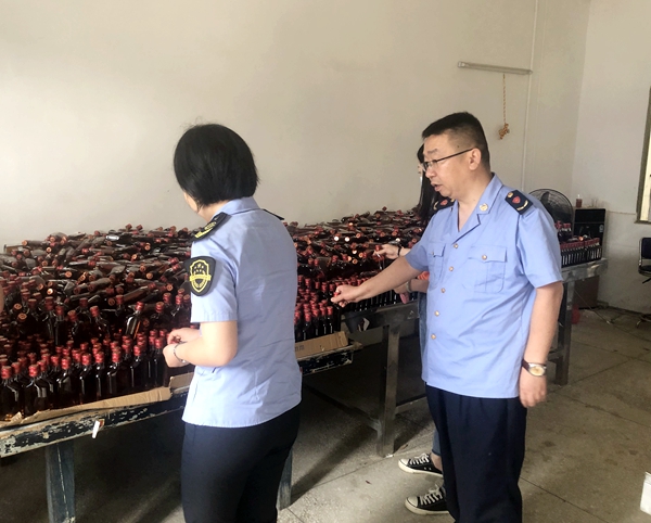 执法人员依据《中华人民共和国反不正当竞争法》相关规定,对涉嫌混淆“中国劲酒”的产品600瓶、包装80个予以扣押,并依法对违法行为予以立案调查。