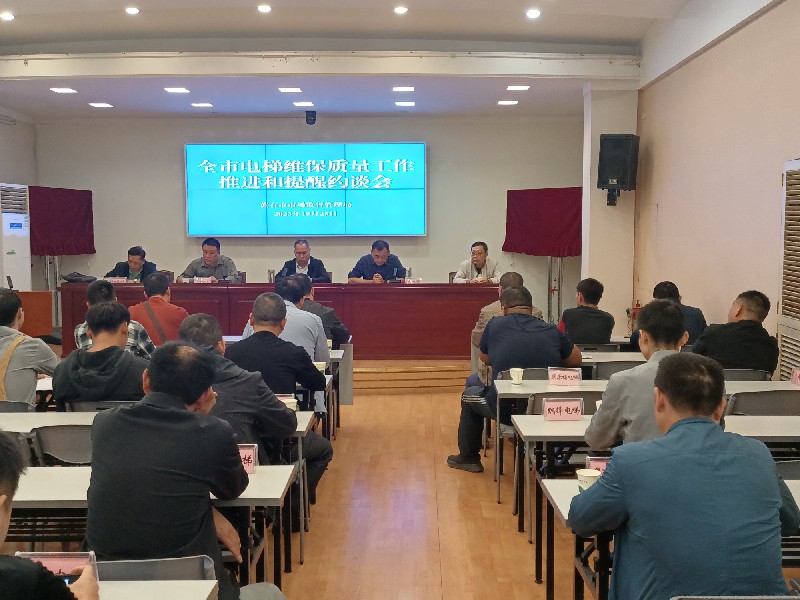 为进一步提升电梯维护保养质量,加快推进我市963333应急处置平台建设工作,强化电梯维保单位信息化、智慧化监管,推动电梯维保单位全面落实安全主体责任,10月25日下午,市市场监督管理局组织召开全市电梯维保质量工作推进和提醒约谈会,综合执法支队,市局特种机电科,市电梯协会以及在黄有维保业务的电梯维保公司相关负责人共40余人参加会议,市局党组成员、副局长刘高畅出席会议并讲话。