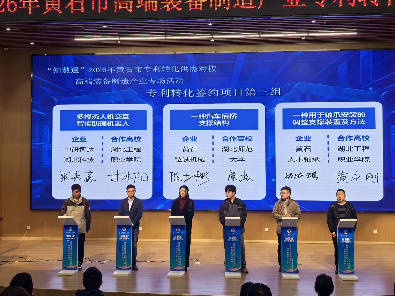 为推动专利转化运用,助力高端装备制造产业高质量发展,3月26日,“知慧通”2026年黄石市高端装备制造产业专利转化供需对接专场活动在湖北工程职业学院成功举行。市市场监管局党组成员、副局长王萍出席活动并讲话。